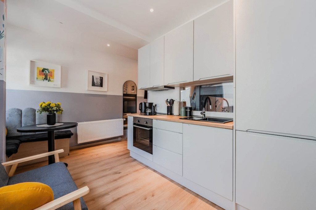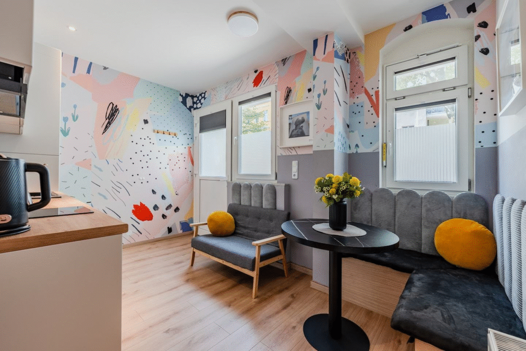 Artful apartment in the heart of Berlin. Our small micro-apartment features everything you need for a Berlin city break including fully stocked kitchen with microwave, oven, kettle, coffee maker, fridge and washing machine, queen bunk bed for four (140x200cm) a desk and dining area. Family friendly.